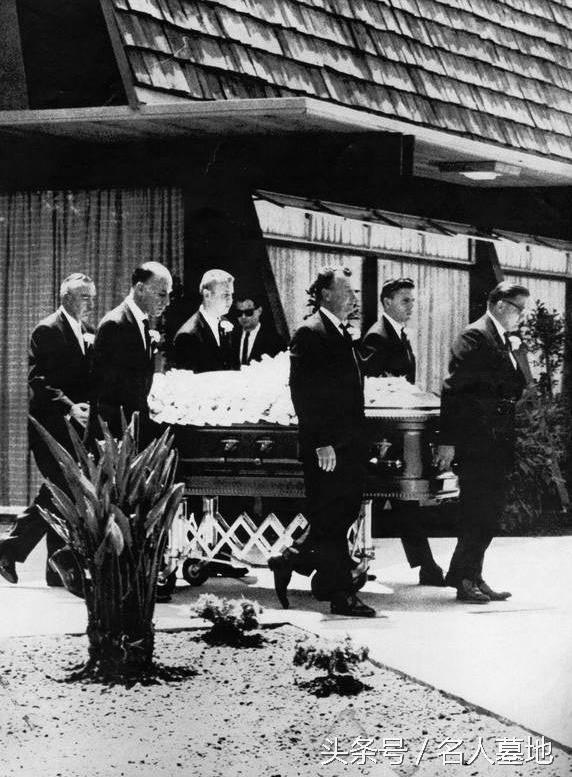 1962年8月8日,梦露葬礼在洛杉矶举行。其第二任丈夫乔含泪主持,两人原来准备复婚的。